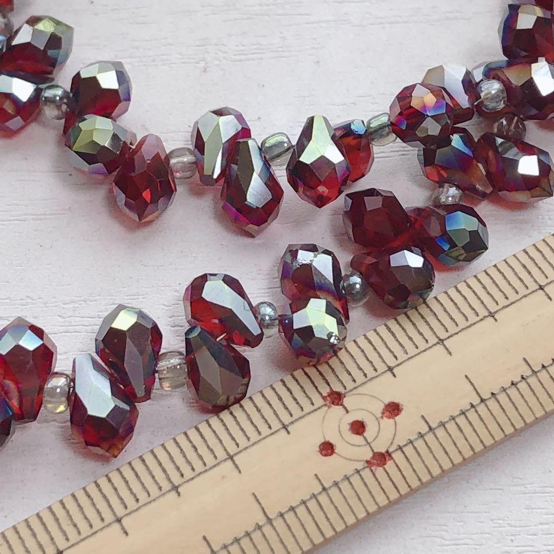 ホーム ガラスビーズ 連売り P143/ガラスビーズ◇キラキラ多面カット ドロップ形 1連