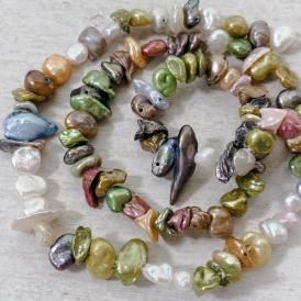 ホーム 淡水真珠 淡水真珠連売 P509/淡水パール◇艶あり マルチカラー ケシ形1連
