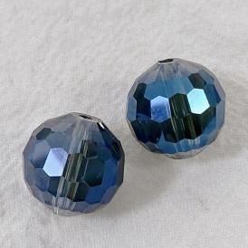 P607/ガラスビーズ◇ミラーボールカット ブルー 約15mm 2個set