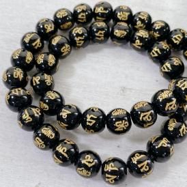ホーム 天然石 天然石連売  P673/天然石◇梵字 瑪瑙 約8mm1連