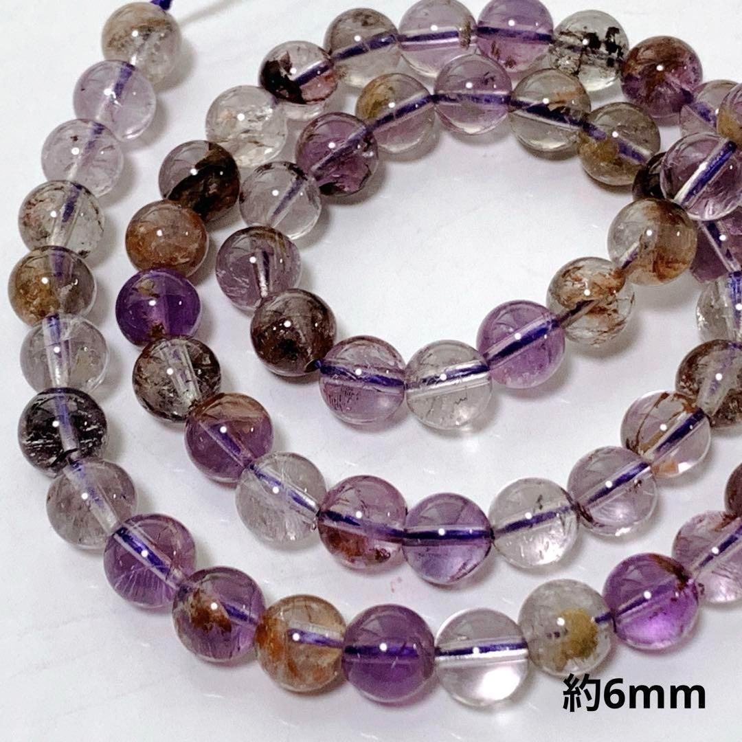 P866/天然石◇パープルファントムクォーツ 約6mm 1連※ランダム発送