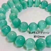 P1001/人工石◇キャッツアイ エメラルドグリーン 約12mm 1連