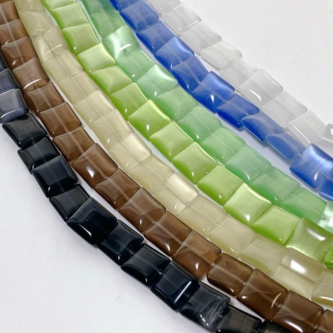 P1025/人工石◇キャッツアイ スクエア形 ブラウン 約10mm 1連