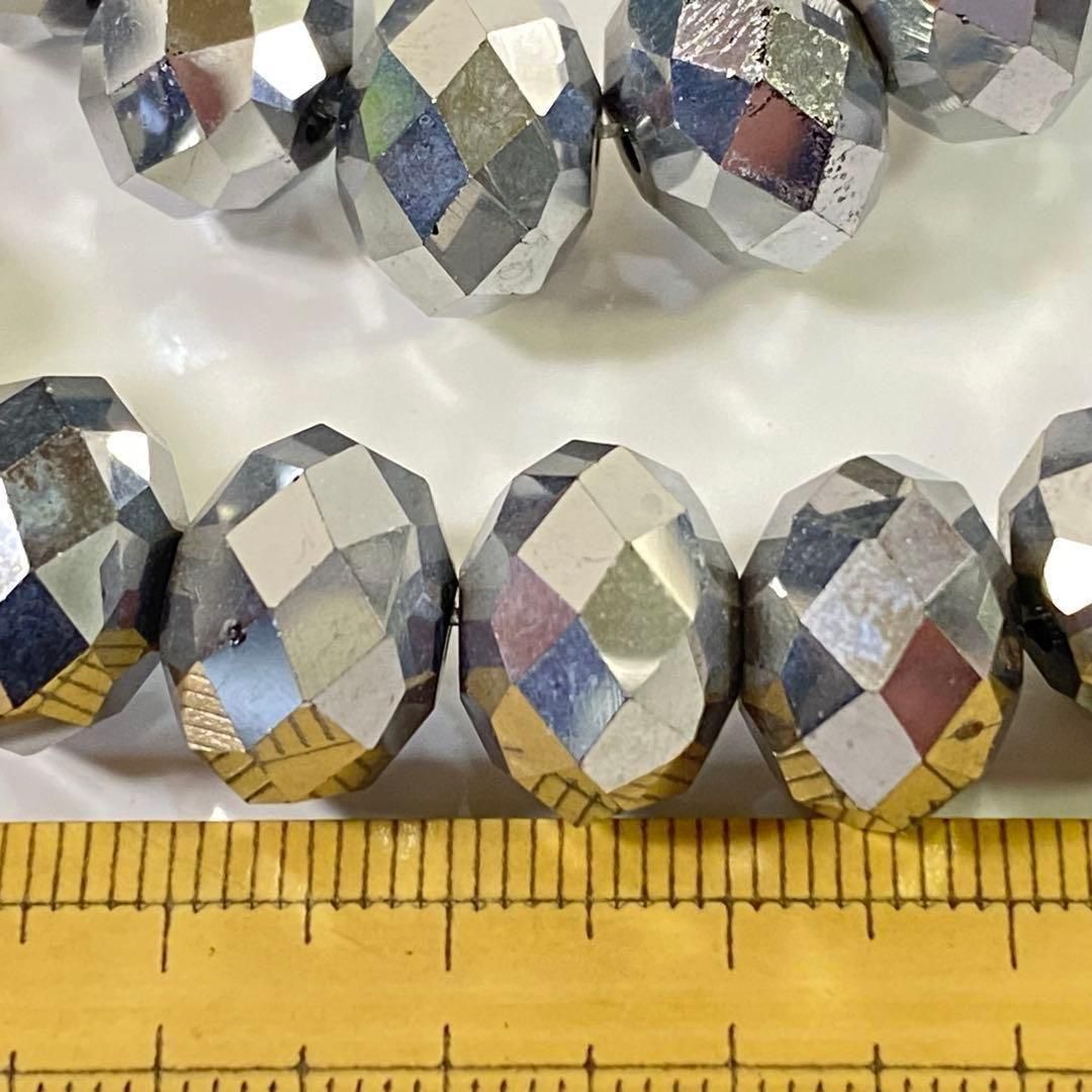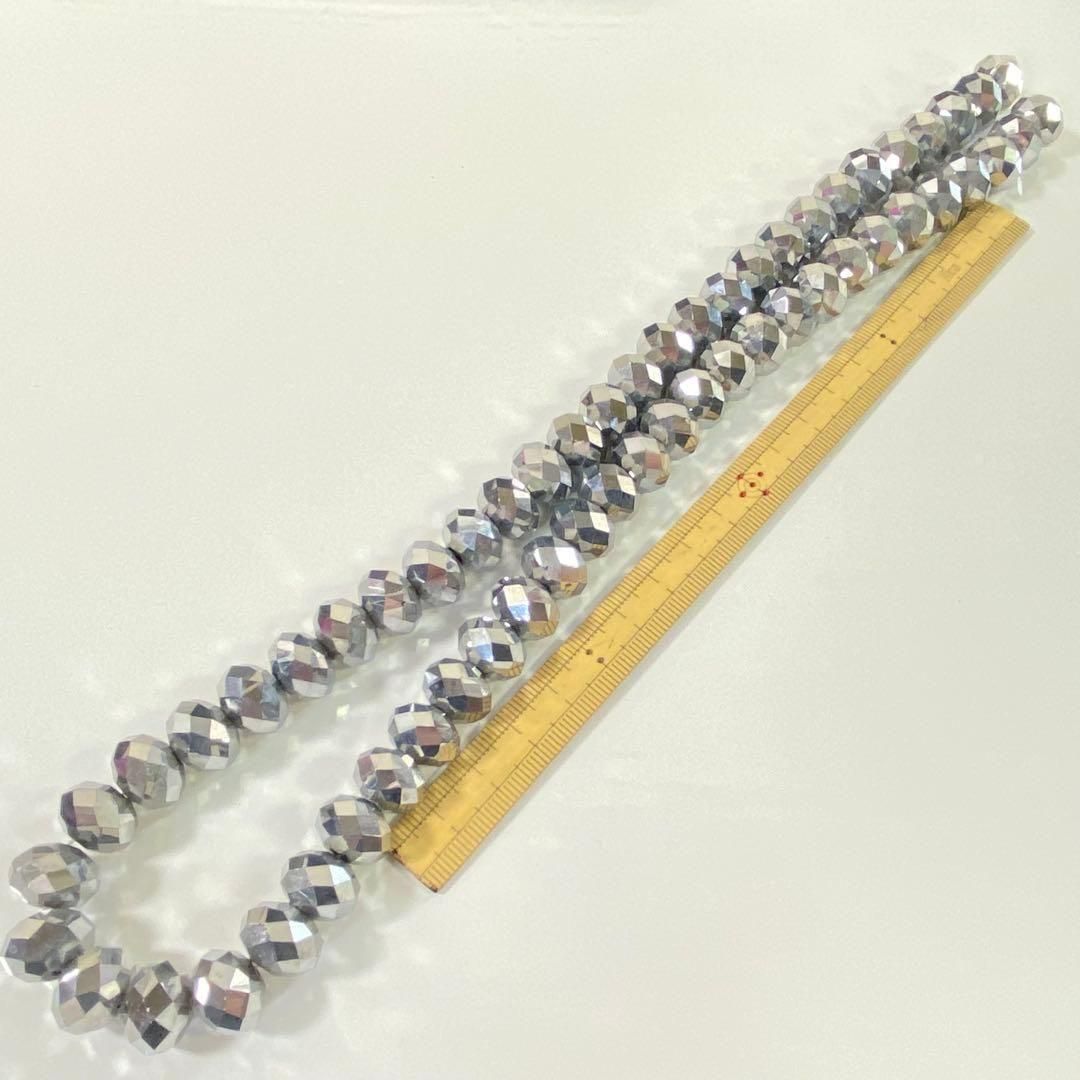 P1032/ガラスビーズ◇キラキラボタンカット シルバー1連