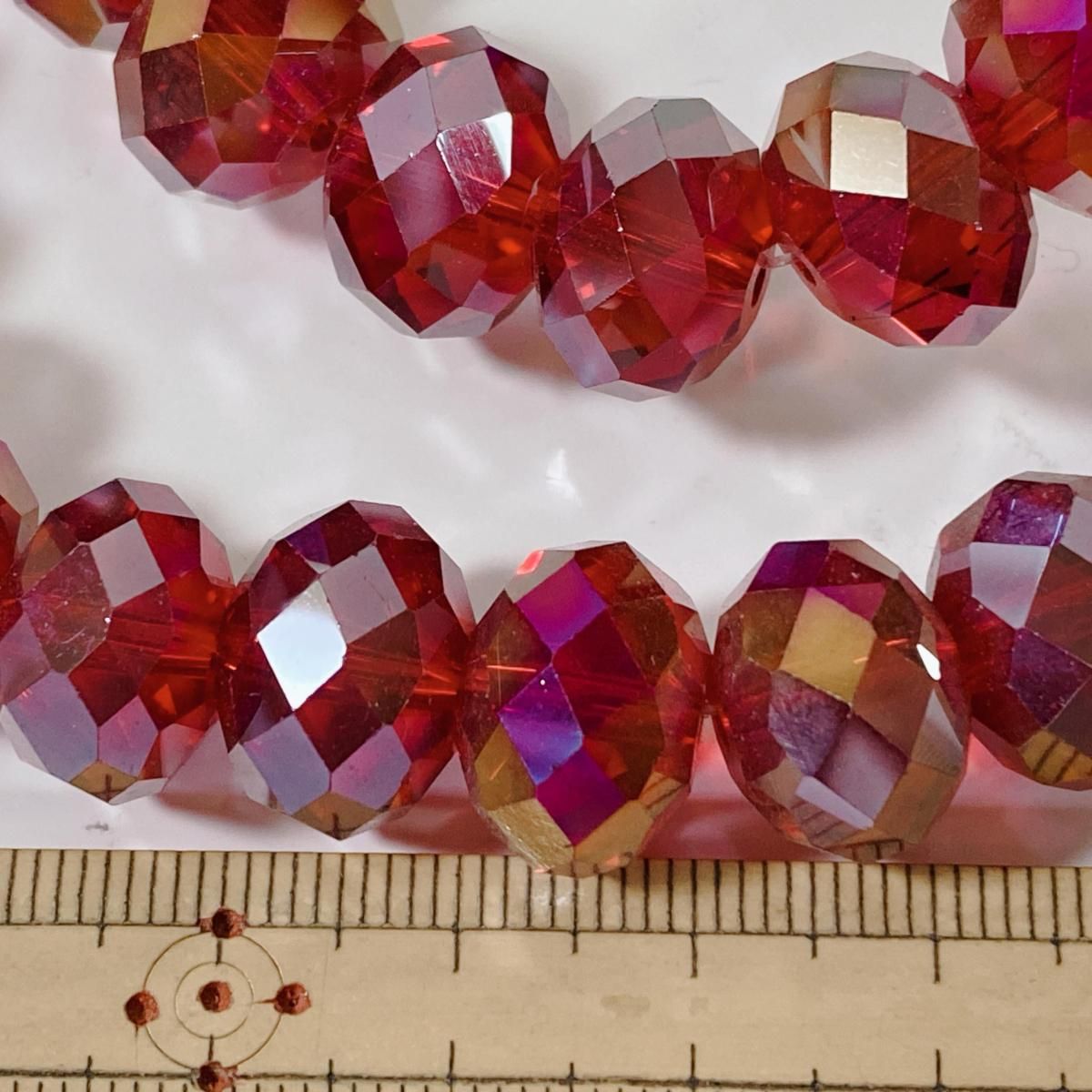 P1036/ガラスビーズ◇キラキラボタンカット クリアレッド1連