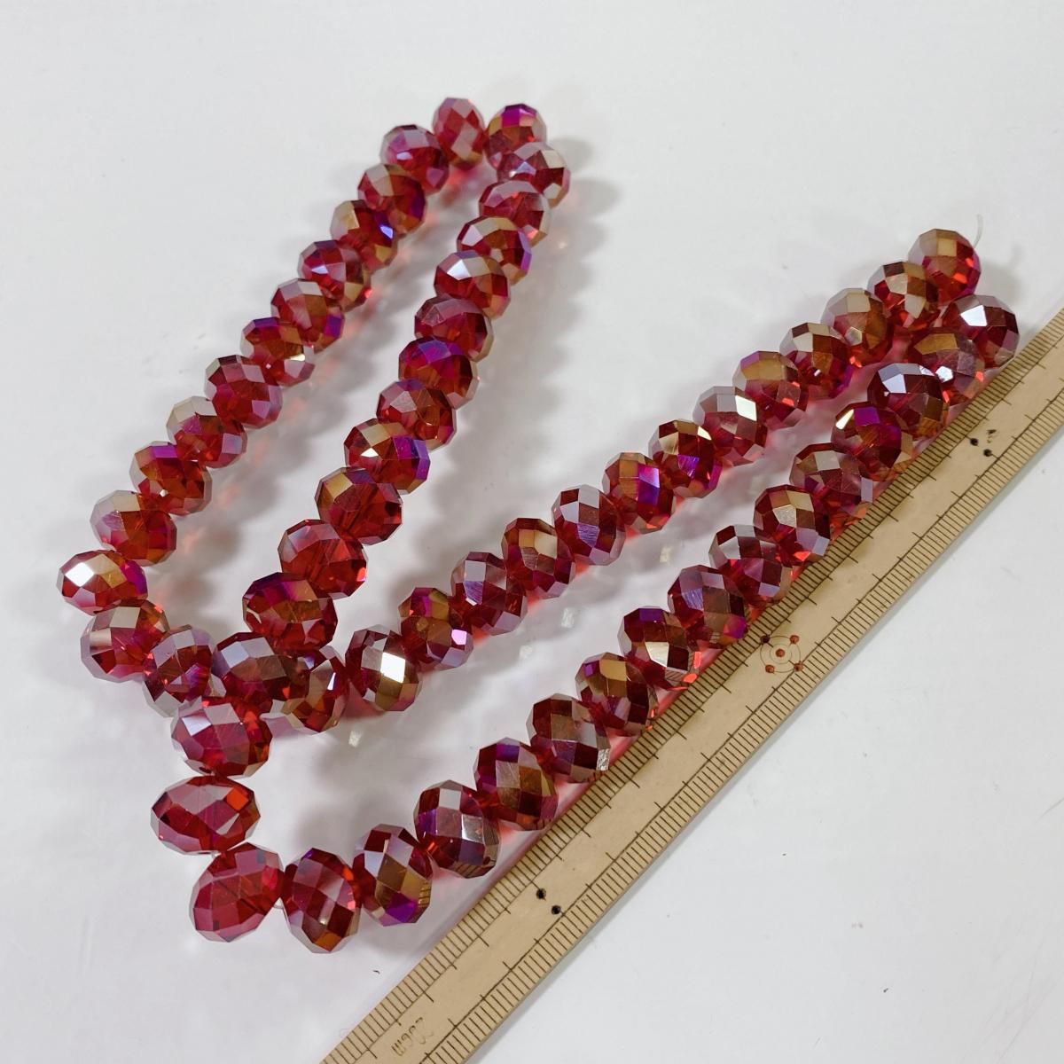 ホーム ガラスビーズ 連売り P1036/ガラスビーズ◇キラキラボタンカット クリアレッド1連
