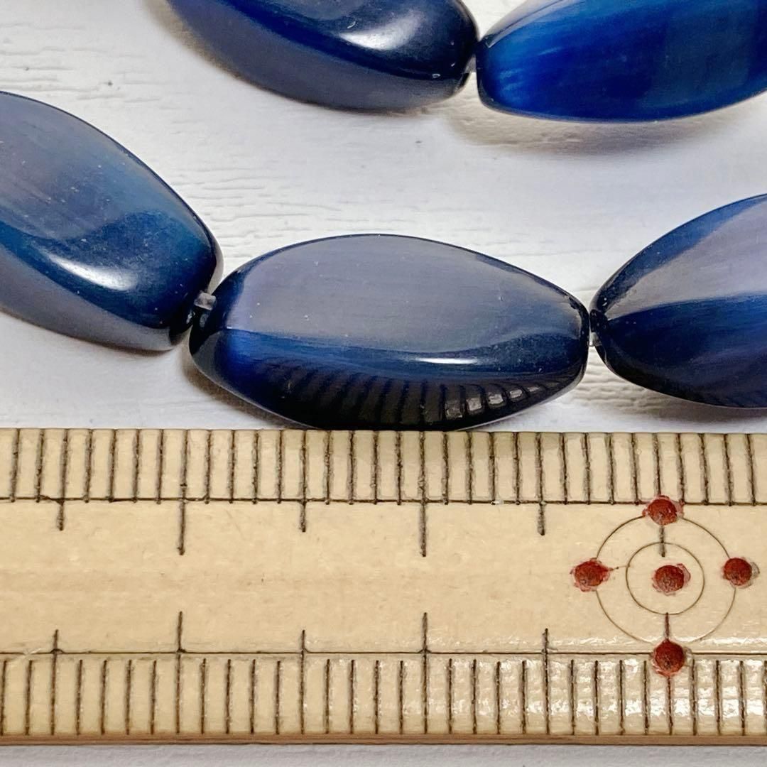 Q060/人工石◇キャッツアイ なつめ形 ネイビー 1連