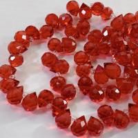 Q067/ガラスビーズ◇多面カット ドロップ形 レッド 1連
