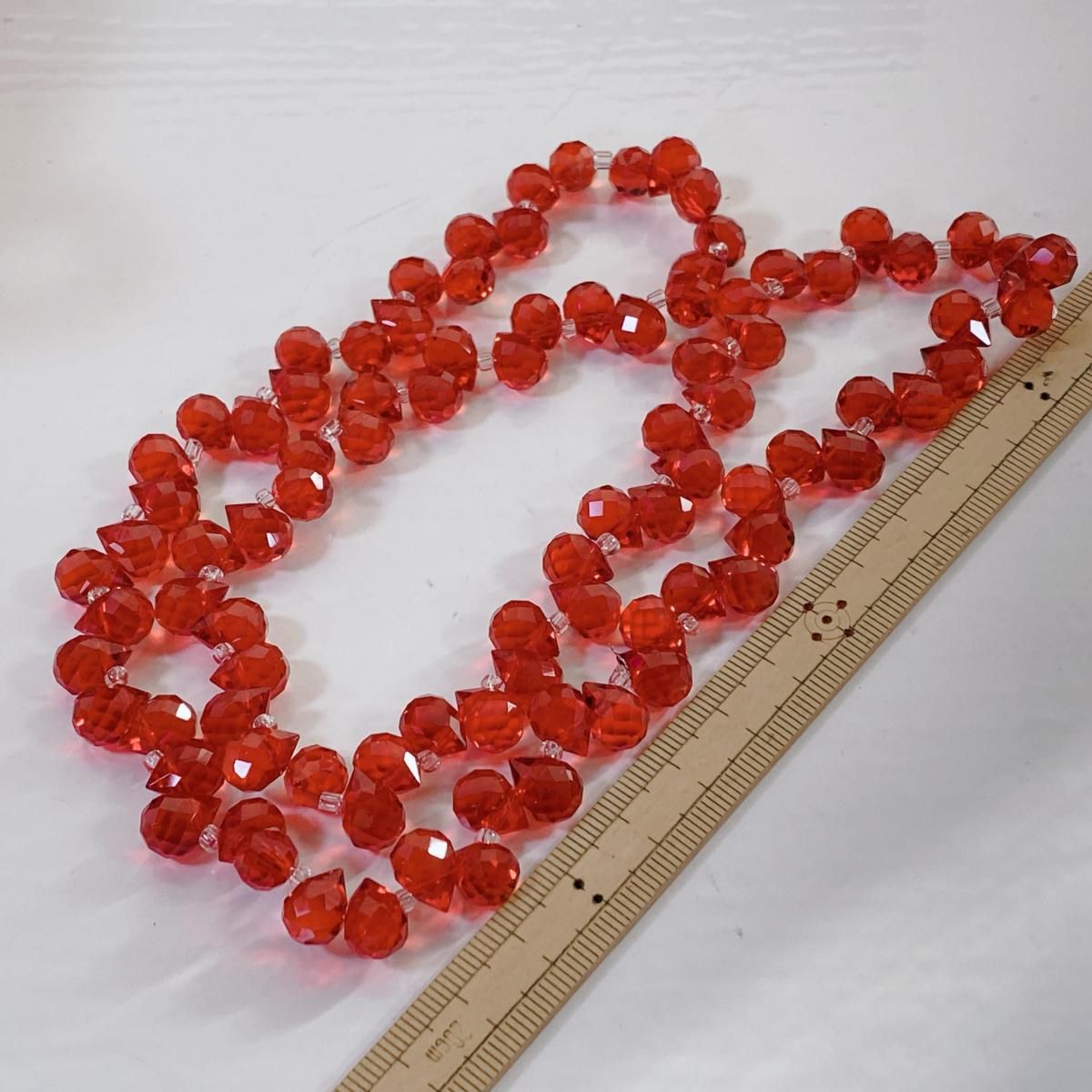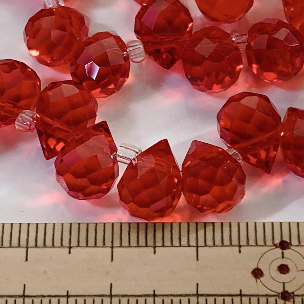 ホーム ガラスビーズ 連売り Q067/ガラスビーズ◇多面カット ドロップ形 レッド 1連