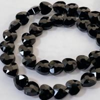 Q070/ガラスビーズ◇多面カット ハート形 ブラック 1連