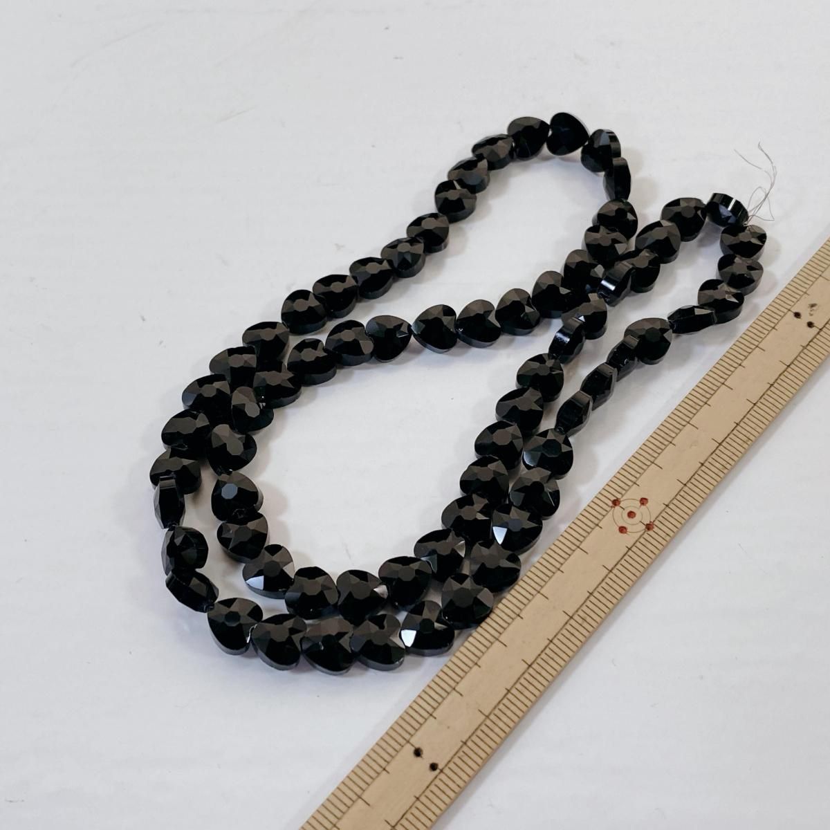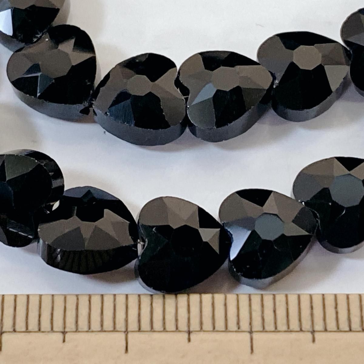 ホーム ガラスビーズ 連売り Q070/ガラスビーズ◇多面カット ハート形 ブラック 1連