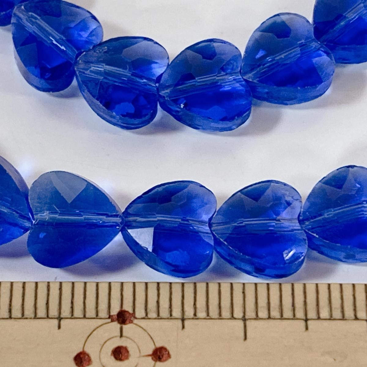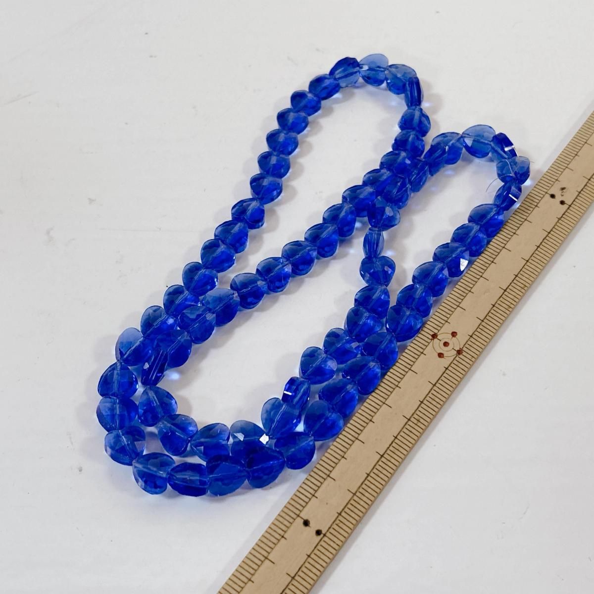 ホーム ガラスビーズ 連売り Q073/ガラスビーズ◇多面カット ハート形 ブルー 1連