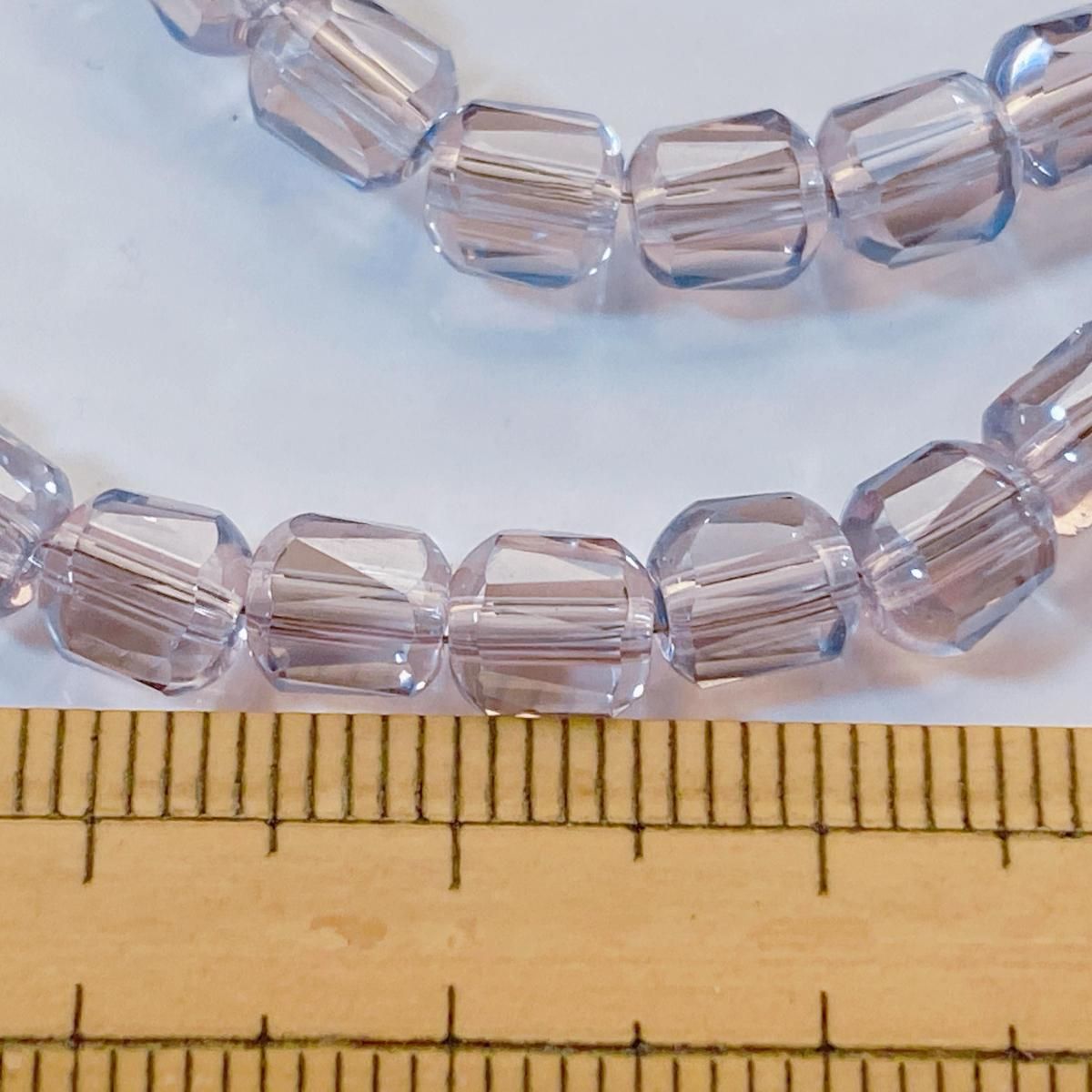 Q075/ガラスビーズ◇多面カット 円柱形 クリアパープル 1連