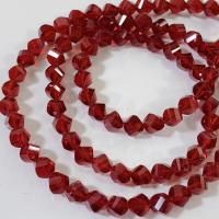 Q081/ガラスビーズ◇多面カット クリアレッド 1連