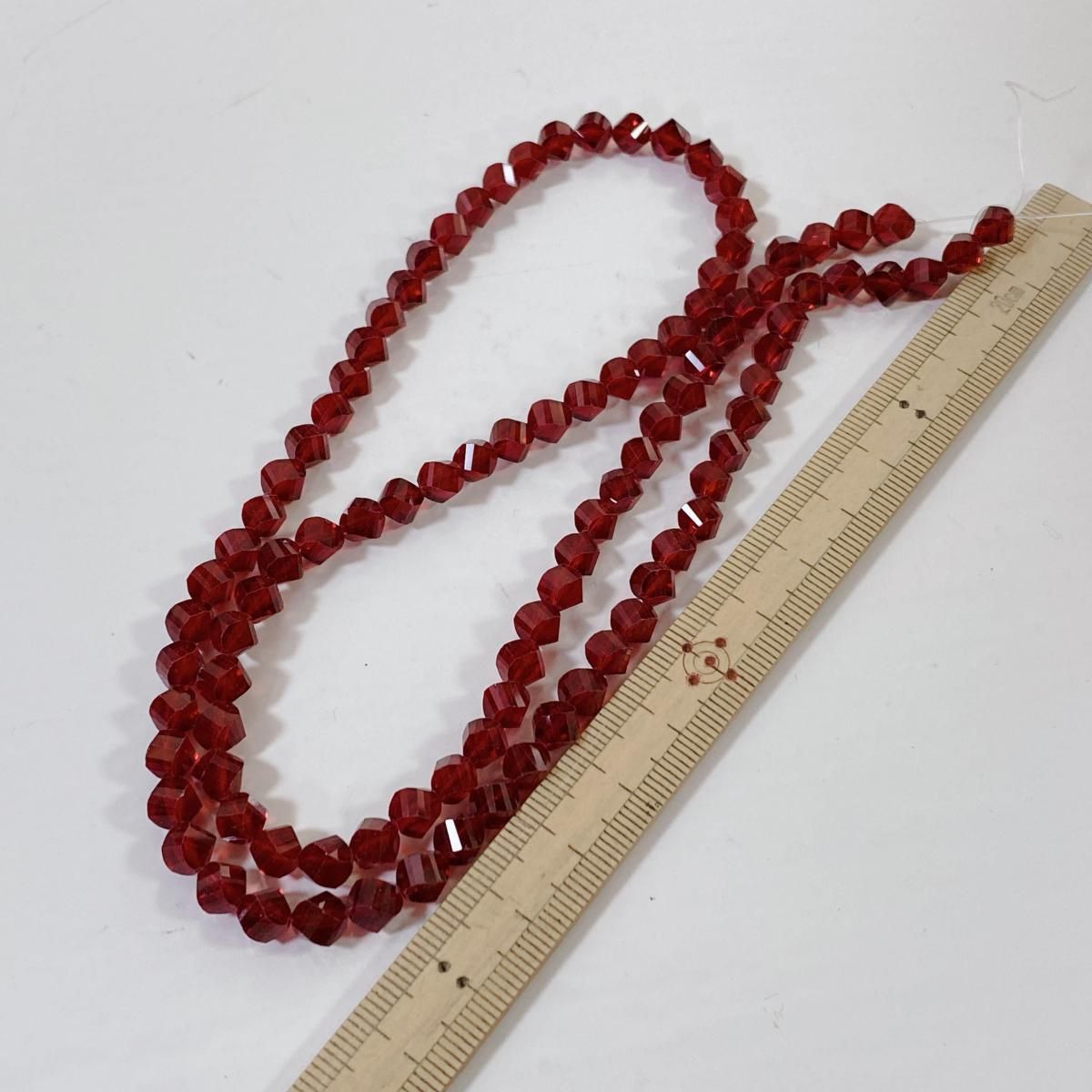 ホーム ガラスビーズ 連売り Q081/ガラスビーズ◇多面カット クリアレッド 1連