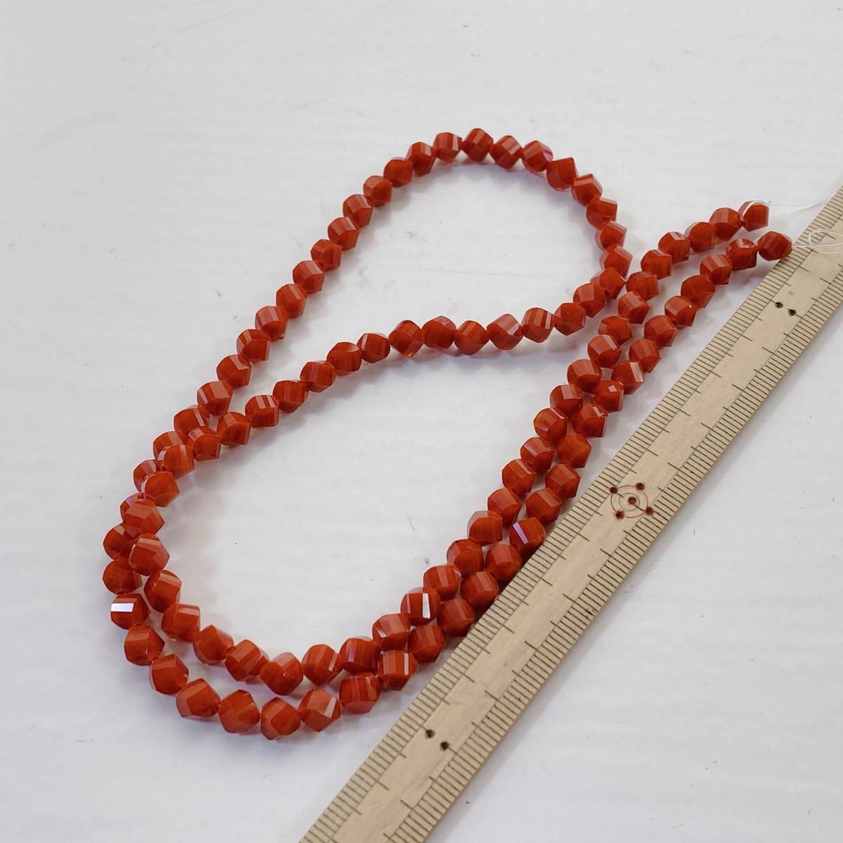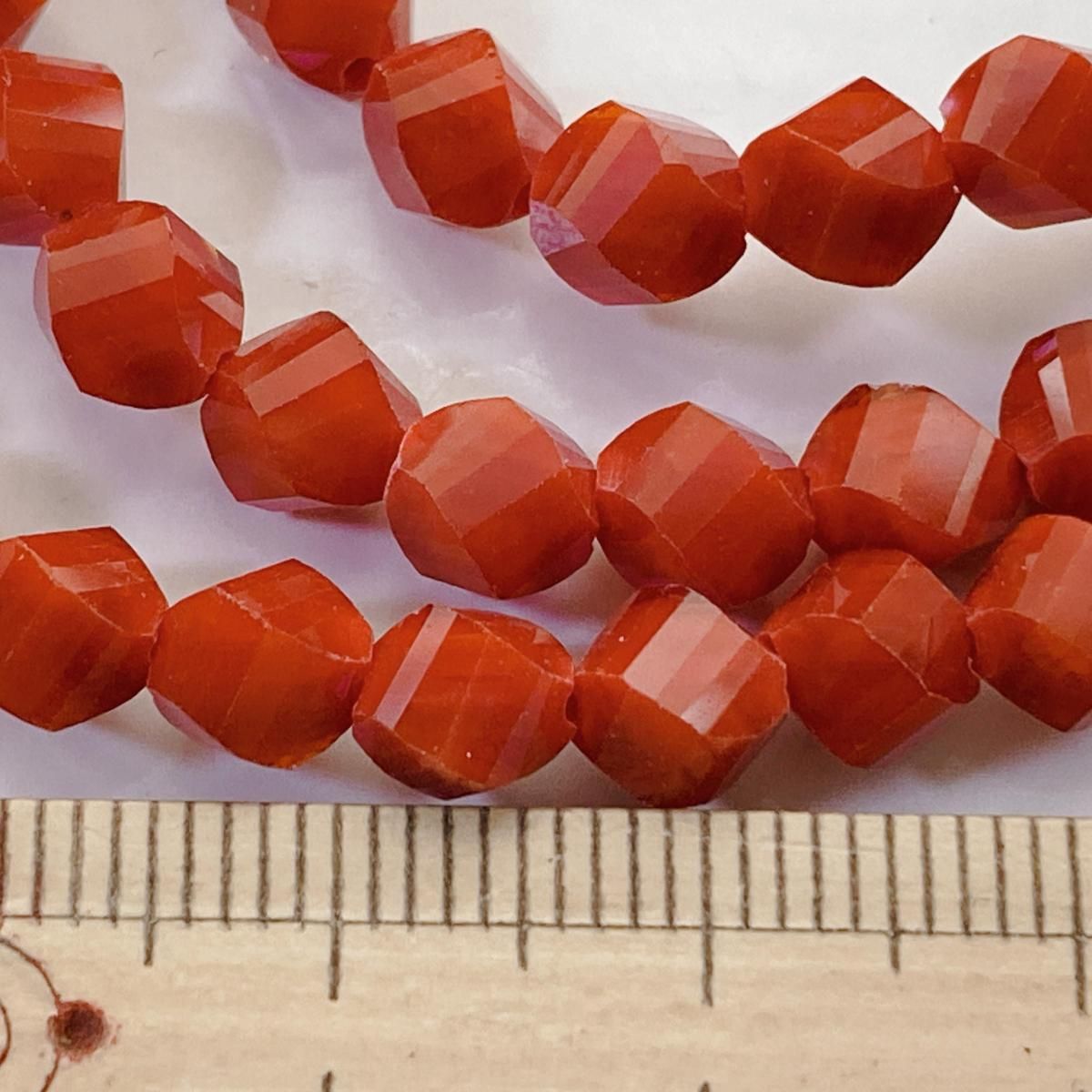 ホーム ガラスビーズ 連売り Q084/ガラスビーズ◇多面カット レッド1連