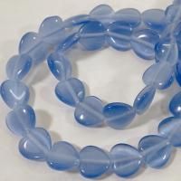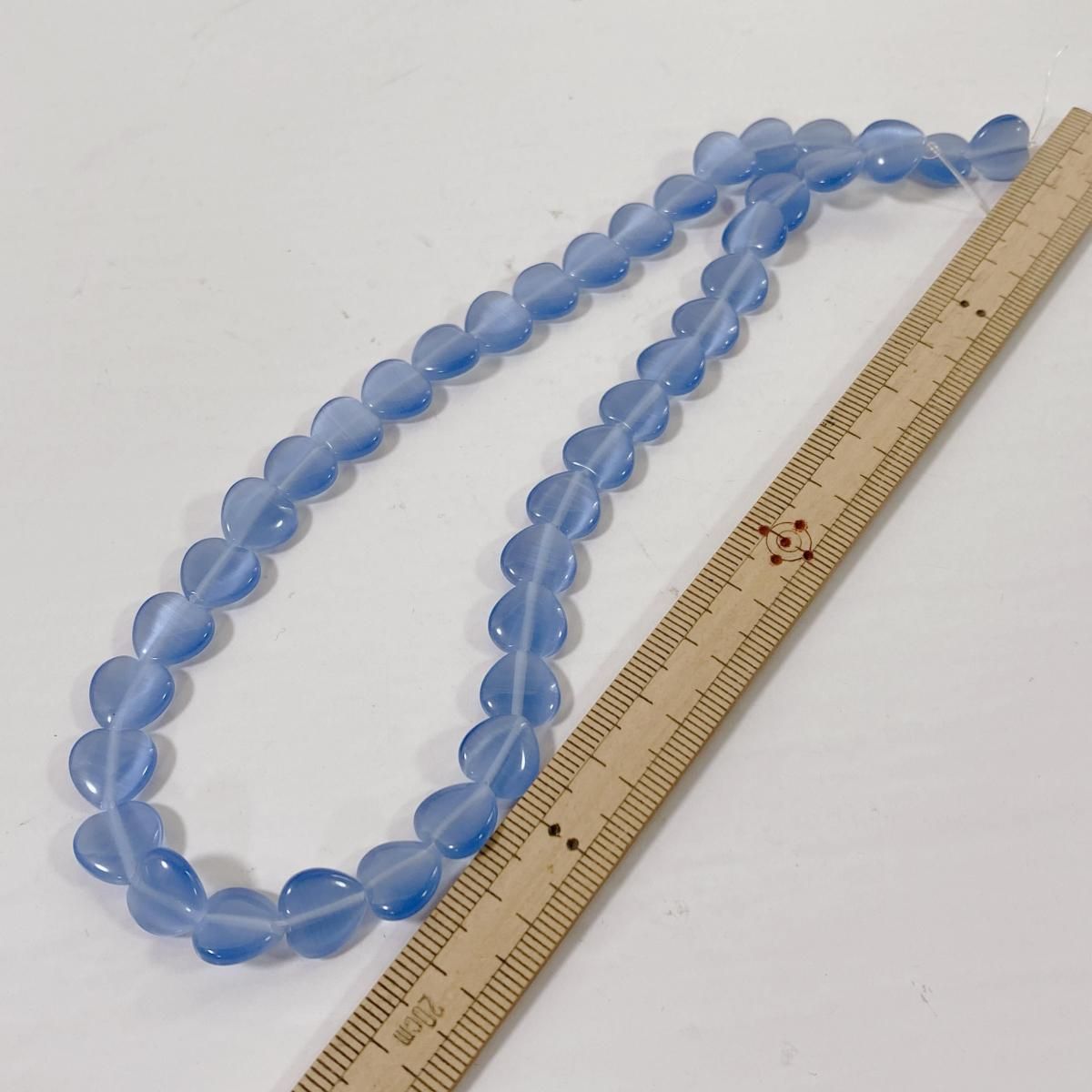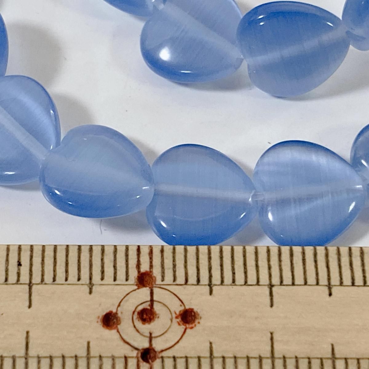Q098/人工石◇キャッツアイ ハート形 くすみブルー系 大サイズ1連
