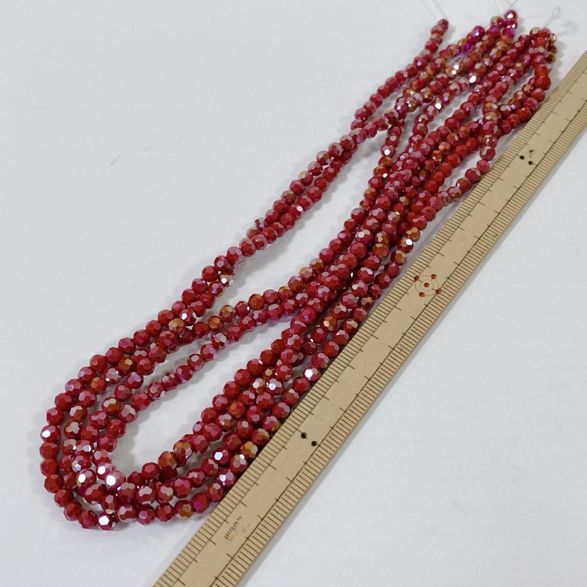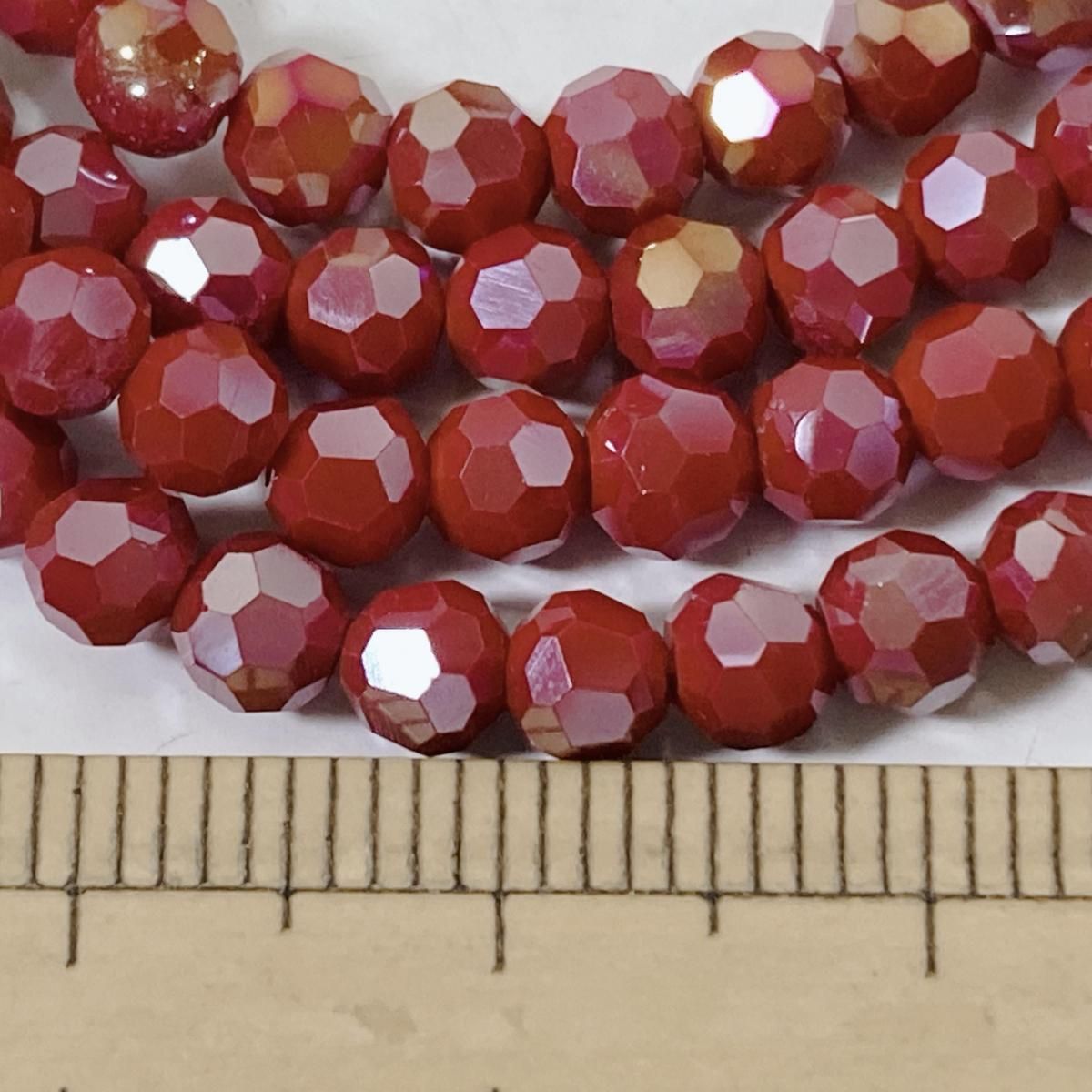 ホーム ガラスビーズ 連売り Q153/ガラスビーズ◇多面カット キラキラレッド4連