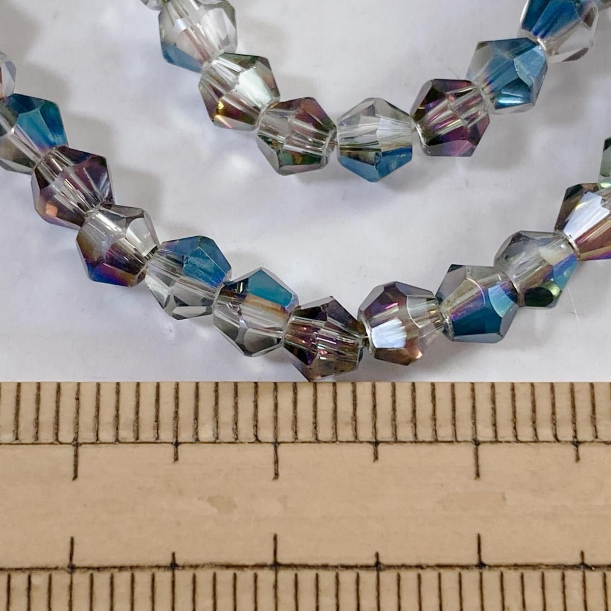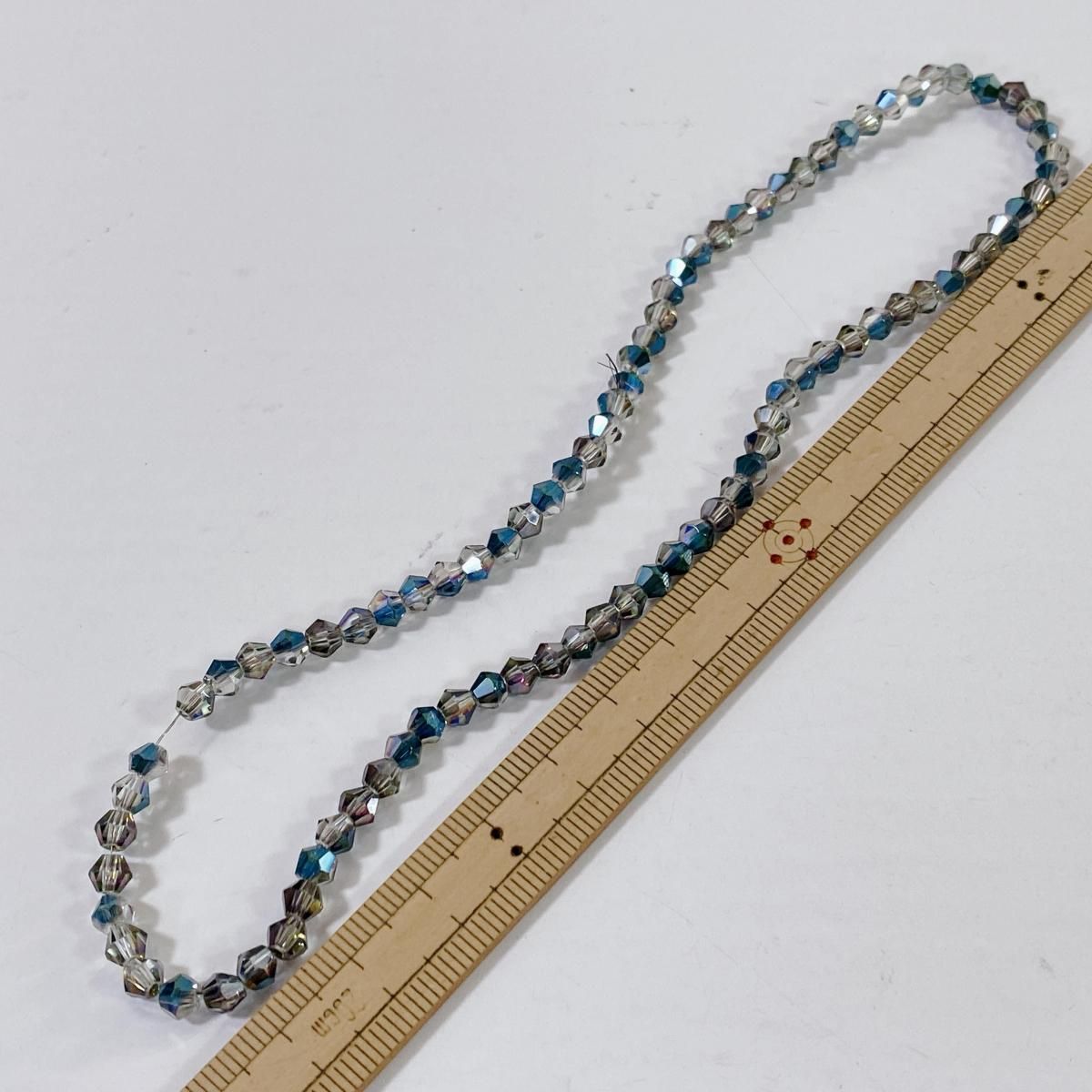 ホーム ガラスビーズ 連売り Q166/ガラスビーズ◇ソロバン形 キラキラクリアグリーンブルー系1連