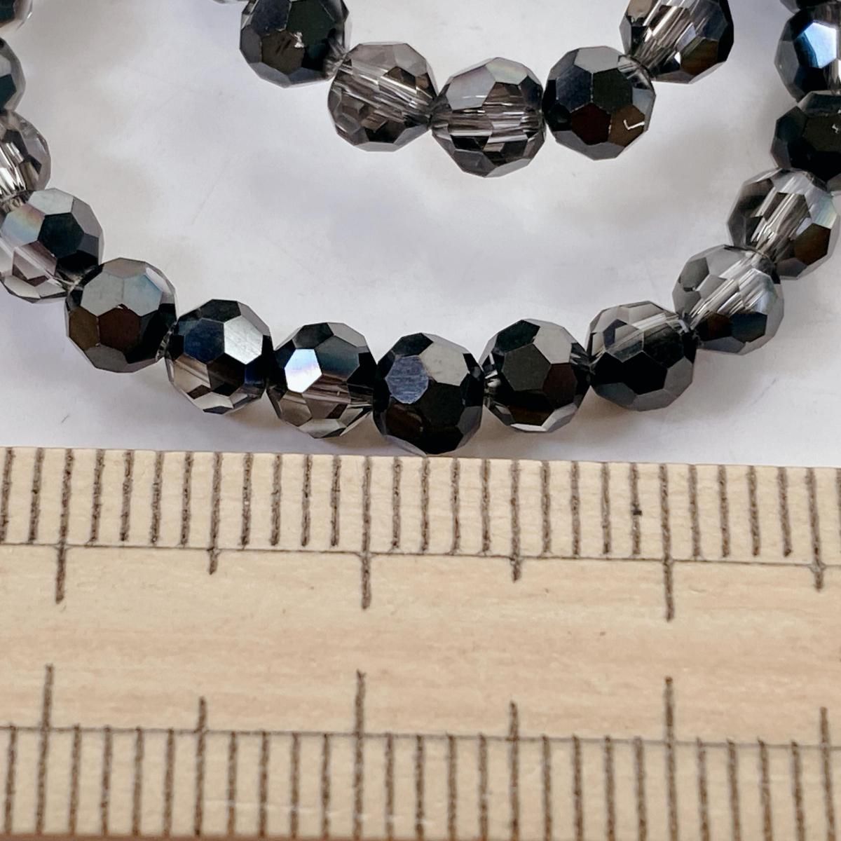 Q246/ガラスビーズ◇多面カット クリアブラック系1連