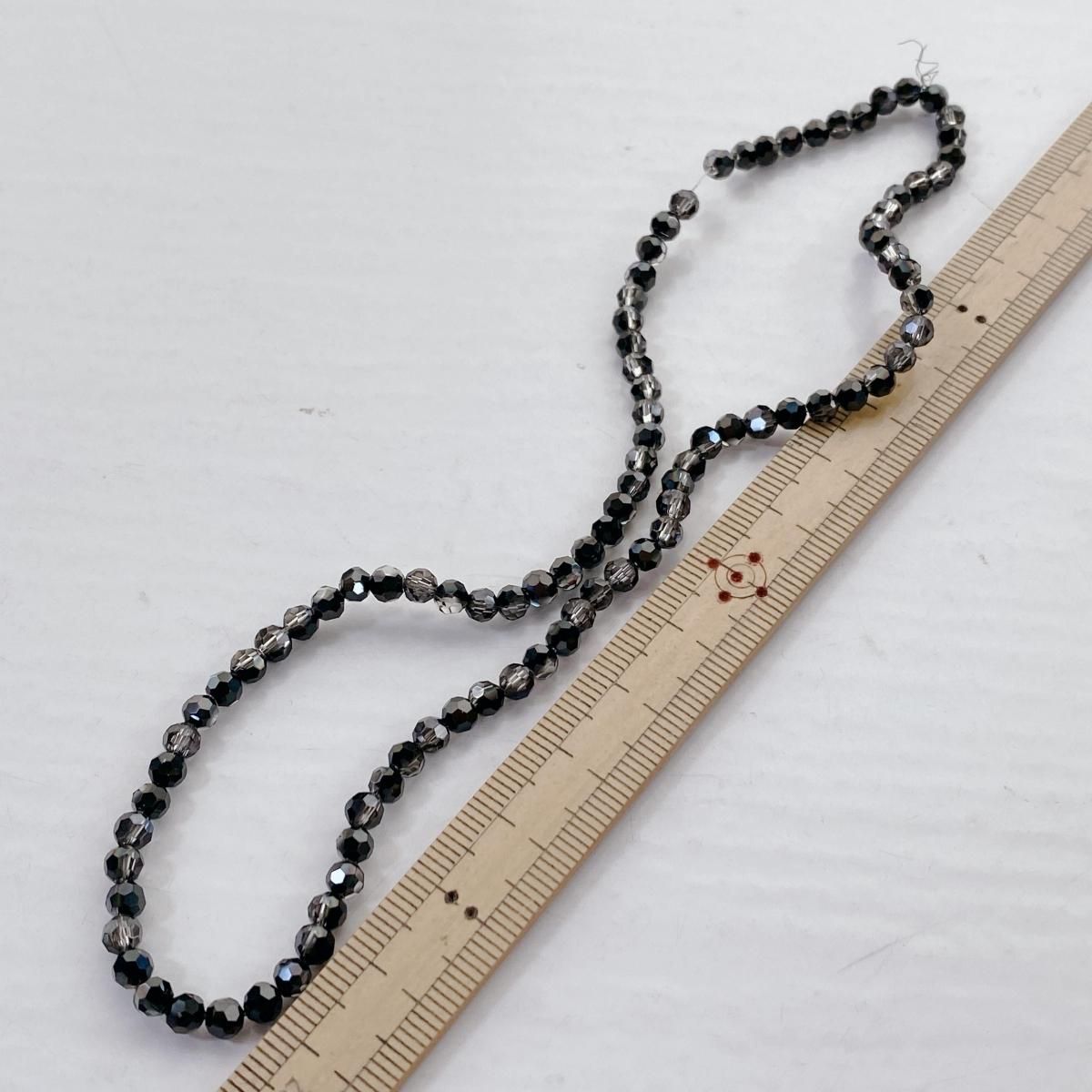 ホーム ガラスビーズ 連売り Q246/ガラスビーズ◇多面カット クリアブラック系1連