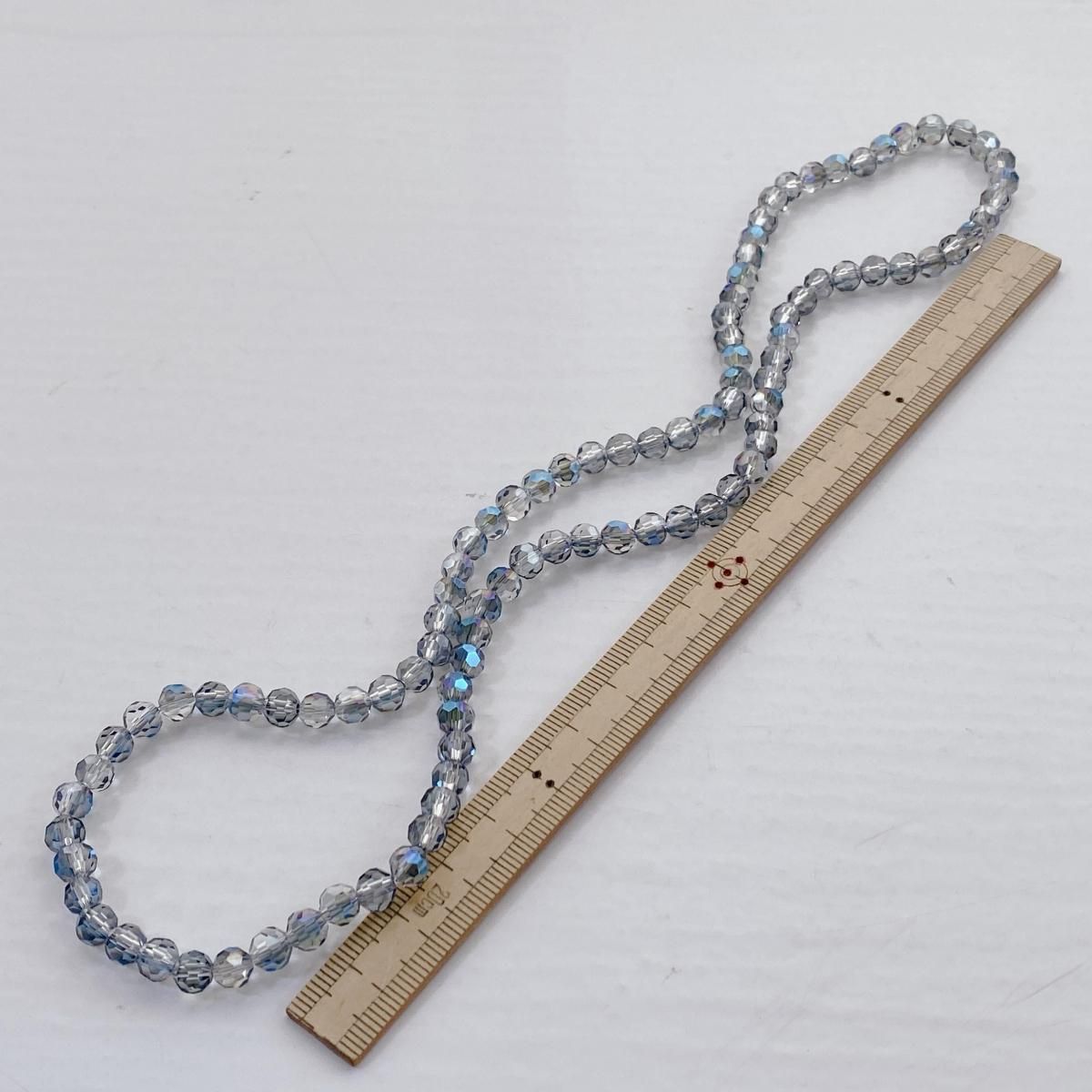 ホーム ガラスビーズ 連売り Q247/ガラスビーズ◇多面カット キラキラ クリアブルー系1連