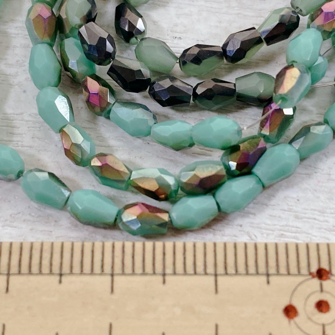 Q279/ガラスビーズ◇多面カット 小粒ドロップ形mix5連